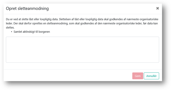 sletteanmodning til superbruger ved enkelte aktiviteter, fx lovpligtige