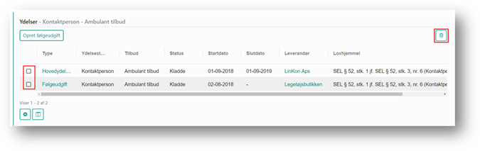som ydelsen tilhører. Hvis ydelsen ikke har været godkendt, kan du slette den