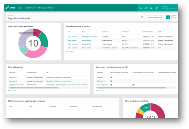 •Mine førstkommende frister: hvor du kan se dine sager fordelt på fristernes farvestatus i et cirkeldiagram.