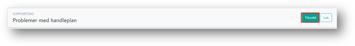 Når du åbner en supportsag oprettet af en anden bruger, fx en anden kommune, kan du tilmelde dig sagen ved at klikke på ’Tilmeld’ øverst på supportsagen.