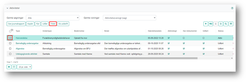 Hvis det er en anden end den sagsbehandler, der har oprettet aktiviteten, som skal behandle den enkelte aktivitet, er det muligt at tildele aktiviteten til den pågældende sagsbehandler. Hvis der er flere sagsbehandlere om én aktivitet, er det også muligt at tildele til en eller flere sekundære sagsbehandlere.