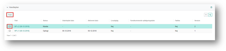 Sagsbehandleren på en plan er som udgangspunkt sagens primære sagsbehandler. Hvis du vil tildele en plan til en anden sagsbehandler, skal du gøre det fra fanen plan på sagen eller på tværs af sager. Du skal sætte flueben i venstre side af listen, for den eller de plan(er), der skal tildeles.