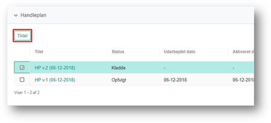 Når du har sat flueben ved én eller flere planer, bliver knappen ”Tildel” tilgængelig. Klik på ”Tildel”.
