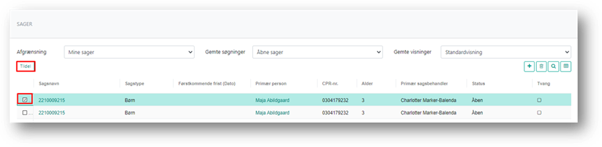 Muligheden for at tildele en eller flere sager til sekundær sagsbehandler, kan anvendes, hvis der reelt er to sagsbehandlere på sagen. Derudover kan det være nødvendigt, hvis du ikke har adgang til en sag, men f.eks. har vagt og skal ind på sagen – så kan du give dig selv adgang. Et andet eksempel er en teamleder, der lige skal ind og lave en genvurdering ved klage eller underretning.