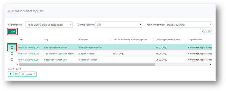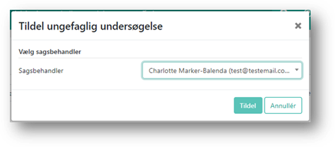 Tryk derefter på knappen ’Tildel’ og sagsbehandler på undersøgelsen ændres til den valgte sagsbehandler.