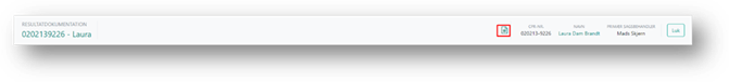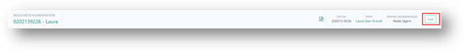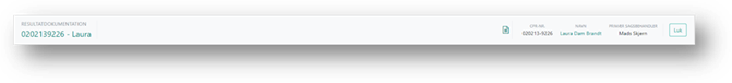 I toppen af resultatdokumentationen er der en menu, som du kan se, uanset hvor du befinder dig på siden. Denne indeholder oplysninger om sagen, Vis udskrift samt en Luk knap.