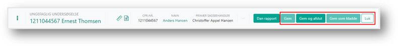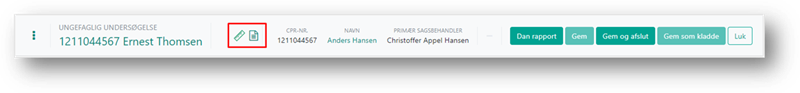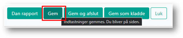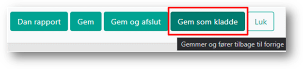 Klikker du på knappen ”Gem som kladde”, fungerer denne ligesom ”Gem knappen” og den bliver også først aktiv, når du har lavet ændringer eller tilføjelser på den ungefaglige undersøgelse.
