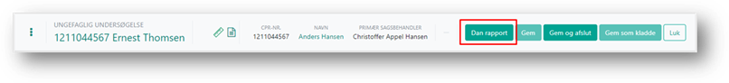 indtastninger og oplysninger på sagen. Rapporten gemmes ikke i systemet, men