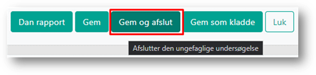 Når undersøgelsen er færdigudarbejdet og skal afsluttes, klikker du på knappen ’Gem og afslut’