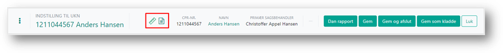 I den næste del af topmenuen finder du oplysninger om sagens primær person, samt indstillingens sagsbehandler.