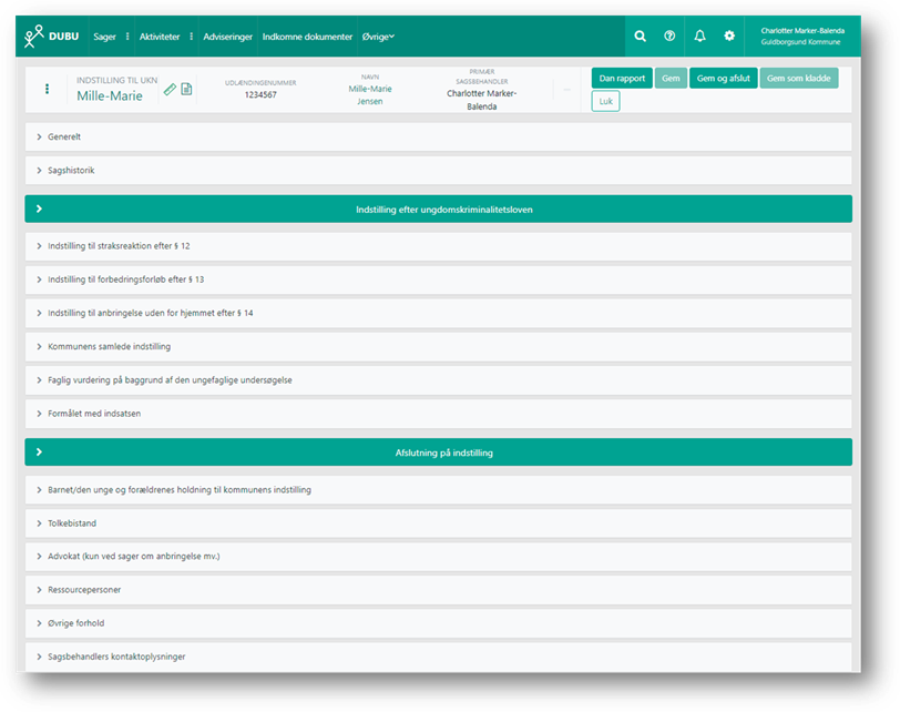 I de følgende afsnit beskrives indhold og udfyldelse af de enkelte områder på Indstillingen til UKN.