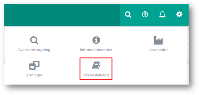 Du tilgår ydelseskataloget via tandhjulsikonet i navigationsbjælken.