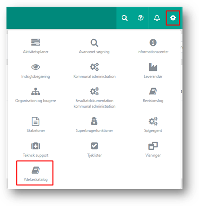 Du åbner ydelseskataloget via tandhjulsikonet i navigationsbjælken.